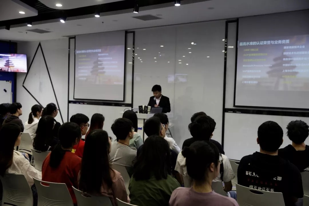 参观结束后,同学们再次来到文化空间,开启“微创之路”宣讲大会。从2002年作为国家级项目与微软合作到如今与知名品牌保持合作的国际化商业规模,微创不断前进在行业的最前端,并且吸引着更多的人才资源留在微创。十七年的发展让微创成为微软全球技术支持中心之一,并且与阿里、宝马等知名品牌合作,成为全球领先的软件提供商。这些荣誉的背后都是微创者的努力,从专门设立的培训员工机构的“微创大学”,到激励的奖励体系和丰富的企业活动,这些企业文化无形之中吸引了同学们,甚至有同学表示希望将来能进入微创进行实习。