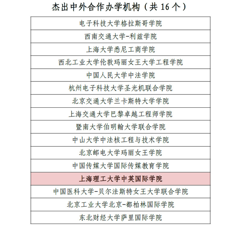 6月25日,中外合作办学联席会发布了《2025中外合作办学机构评价结果公告》,上海理工大学中英国际学院获“杰出中外合作办学机构”。本次评选基于各参评机构的基础数据,围绕办学层次、优质资源引进、人才培养、荣誉奖励、行业声誉五个维度九个一级指标,采用客观评分与专家同行评议相结合的方式,确定本年度中外合作办学机构杰出机构和优秀机构名单。值得一提的是,全国有250多所中外合作办学院校,本次评选仅有16家入选杰出中外合作办学机构。