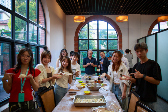 活动最后,师生一同开始包饺子。作为中国传统饮食文化的代表,饺子成为连接不同文化背景学生的纽带。在食堂师傅与学生志愿者的指导下,同学们分组学习多种饺子包制技法,从中式经典的花边饺、月牙饺,到俄罗斯同学分享的当地特色做法。大家边动手边交流各自国家的饮食习俗,现场笑声不断,气氛热烈。