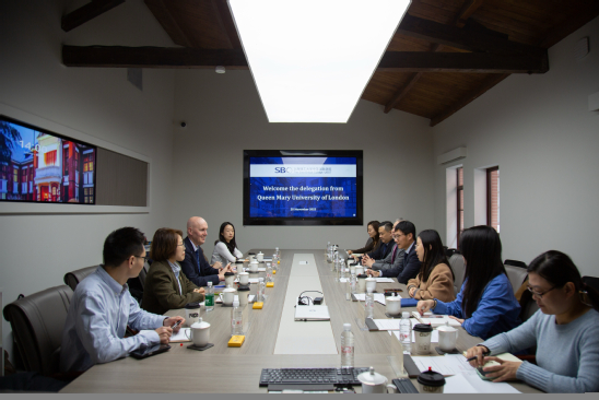 在交流环节,蔡卉介绍了中英国际学院建院近二十年来的发展历程,以及学院通过特色的“一对多”办学模式开展中外合作办学,为社会培养了一大批具有宽广国际视野和扎实专业基础的国际化复合型人才,取得了良好的社会声誉,荣获2025“杰出中外合作办学机构”称号。希望通过此次会议,把握高等教育数字化转型与跨学科创新的发展趋势,在办学层次、人才培养、科研创新、专业共建等方面进一步推动合作,以高水平的国际化合作办学为两校发展注入新的动力。学院商科专业负责人王轲和工科专业负责人Adrian Chong就学院的专业特色、教育教学、人才培养、师资队伍等方面进行了详细介绍。与会双方探讨了本科项目建设与发展,探索联合培养高层次合作办学项目,并围绕人工智能+专业、联合实验室共建、师生访学、国际夏校等议题进行了深入交流,为未来双方的进一步合作奠定了基础。会后,伦敦玛丽女王大学代表团参观了校园。
