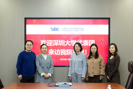 11月20日,深圳大学国际交流与合作部主任韩水仙、国际化行动主管张同欢来访上海理工大学中英国际学院,就中外合作办学机构管理与制度建设进行研讨交流。中英国际学院党委书记李妍,党委副书记、副院长蔡卉,以及学院教务部负责人参加座谈。