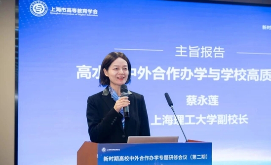 上海理工大学副校长、中英国际学院院长蔡永莲作了题为“高水平中外合作办学与学校高质量发展”的主旨报告。她以上海理工大学中英国际学院和中德国际学院的建设实践为生动案例,系统阐述了高水平中外合作办学在学校发展中的重要支撑作用。蔡永莲指出,高水平中外合作办学应坚持“真融合、高质量、强认证、重特色”四个着力方向,通过深化中外课程体系、师资队伍和教学管理的实质性融合,不断提升人才培养质量和国际认可度,形成具有鲜明办学特色的发展模式。报告为高校以高水平中外合作办学赋能高质量人才培养和学科专业建设提供了有益思路与实践启示。